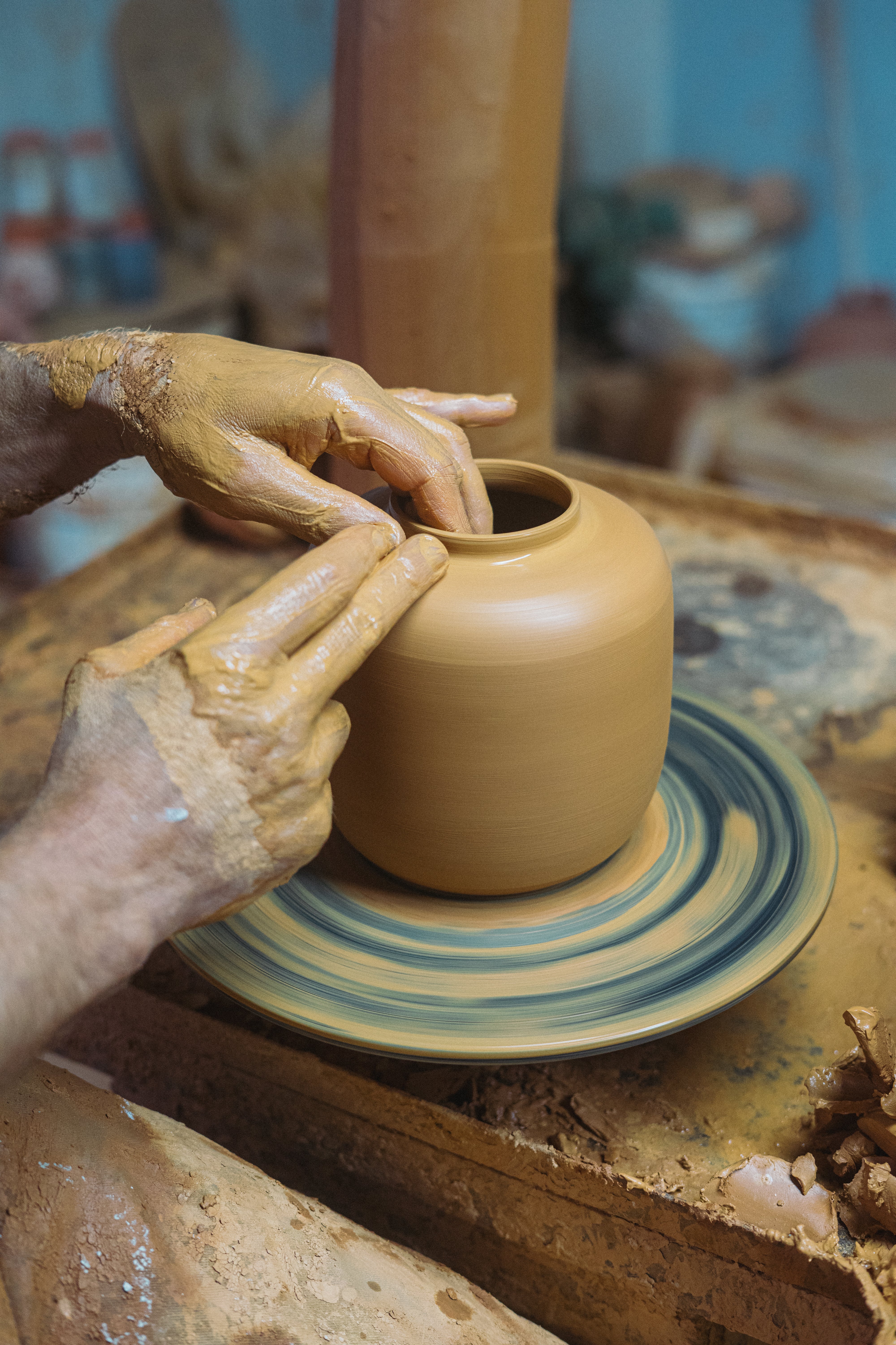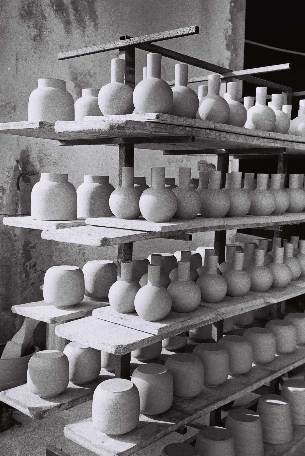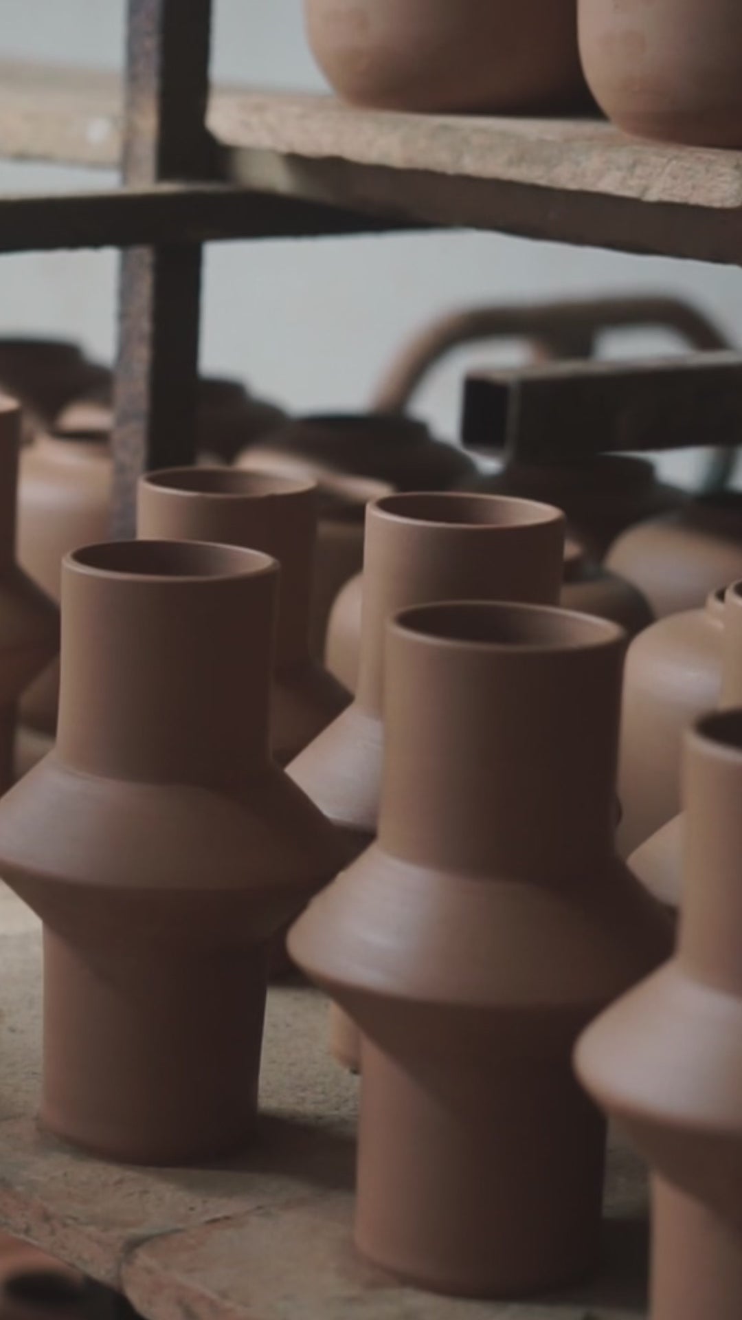 Elk stuk wordt volledig met de hand gedraaid op de pottenbakkersschijf door Portugese ambachtslieden, wat elk exemplaar uniek maakt. De geglazuurde afwerking zorgt voor een subtiele glans die het spel van licht en schaduw versterkt.