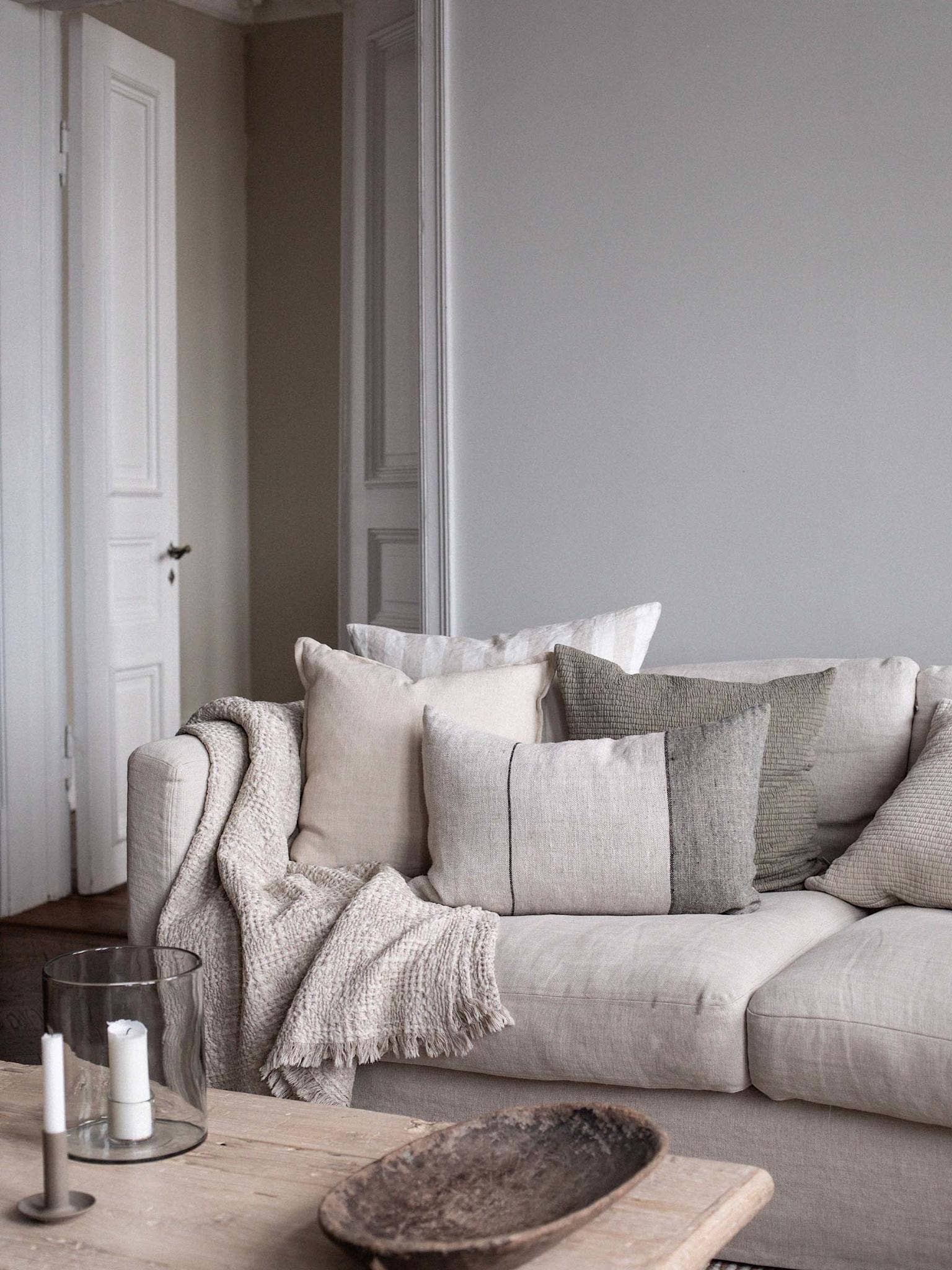 Dankzij het sobere ontwerp past Adrian moeiteloos op zowel de bank als het bed en laat hij zich mooi combineren met de andere decoratieve kussens. De hoes sluit met een discrete rits aan de onderzijde.