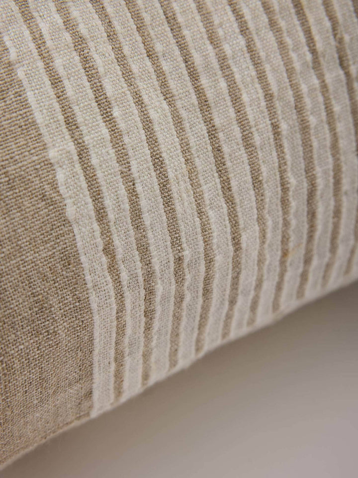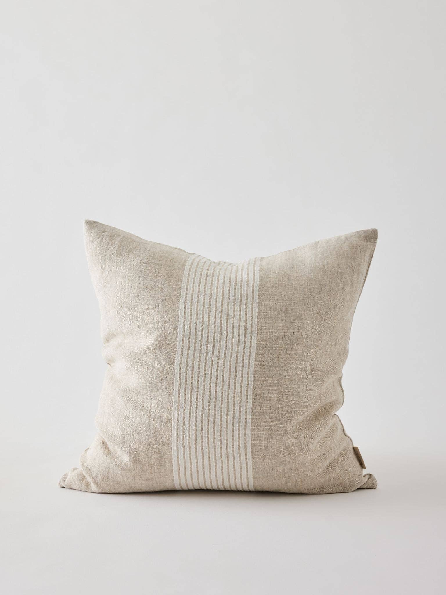 Deze premium kussenhoes van 50x50 cm is gemaakt van Europees linnen en heeft fijne strepen in het midden met effen zijkanten. Een rustig, tijdloos ontwerp dat makkelijk te combineren is.Tell Me More is een Zweeds merk dat bekend staat om hun passie voor kwaliteitsstoffen.