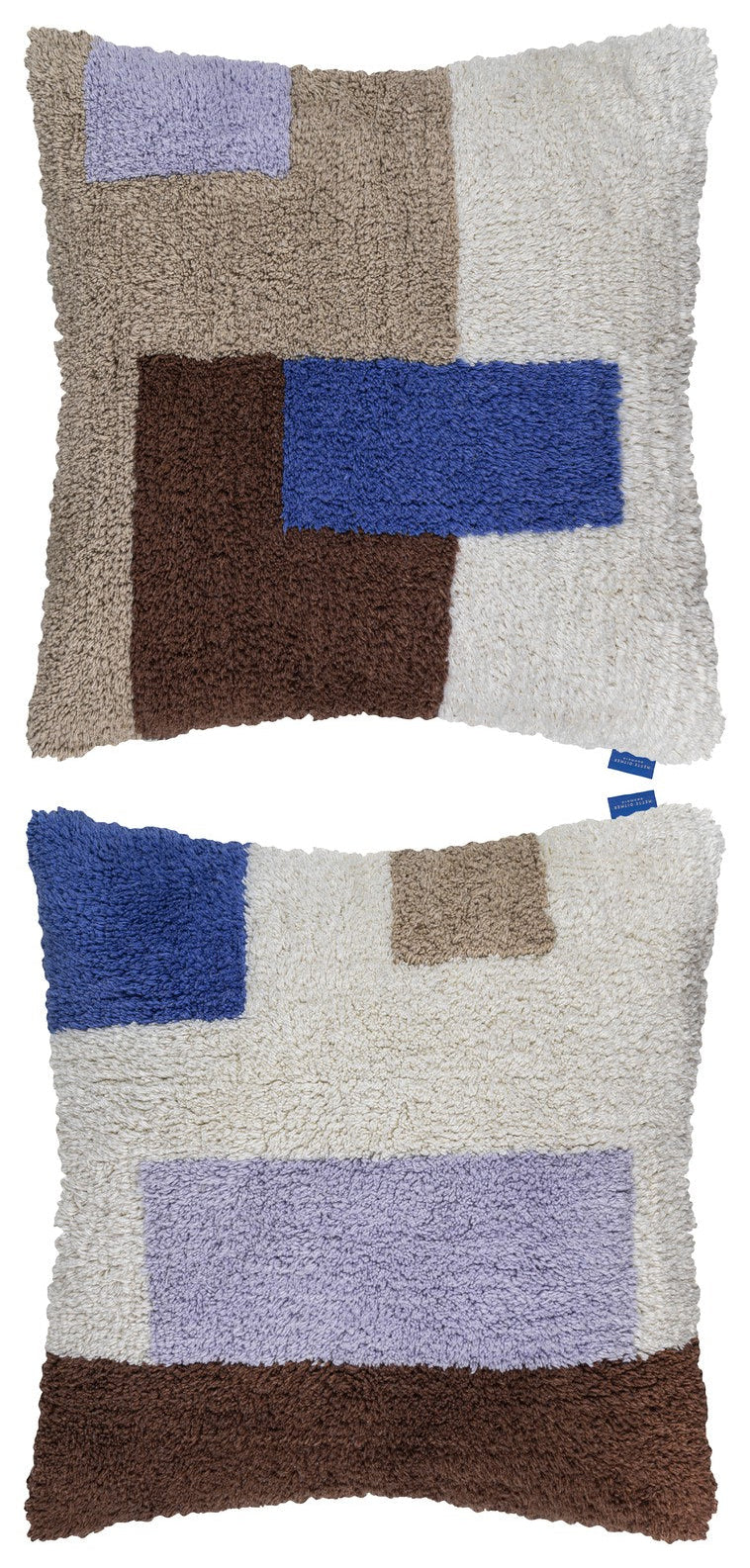 De details aan zowel de voorkant als de achterkant zijn zorgvuldig geselecteerd, waarbij de combinatie van bruin, lila en blauw verandert van expressie, afhankelijk van welke kant naar buiten is gericht. Door de ambachtelijke afwerking blijft dit kussen er niet alleen prachtig uitzien, maar ook comfortabel en stevig – zelfs na veelvuldig gebruik.
