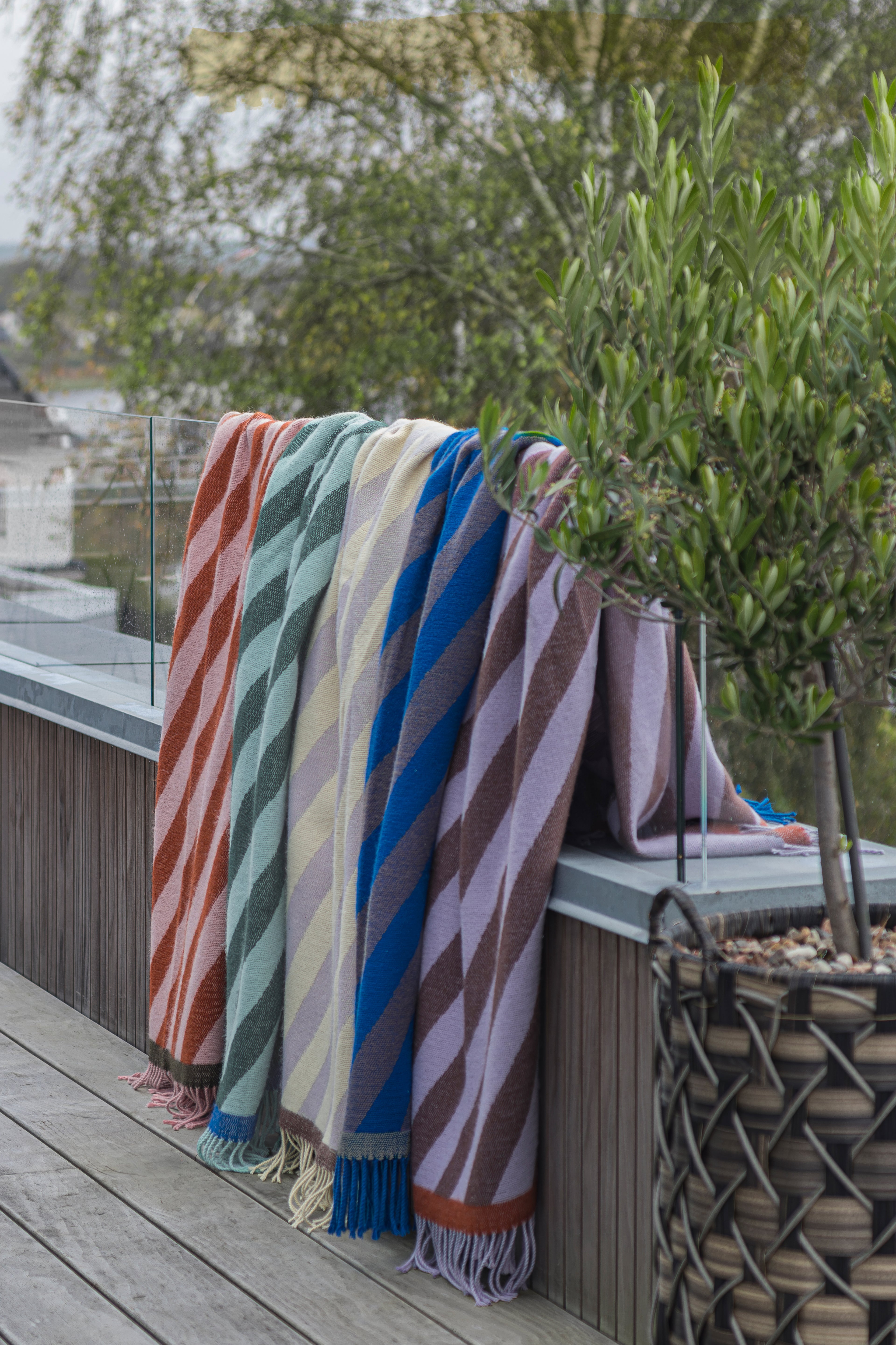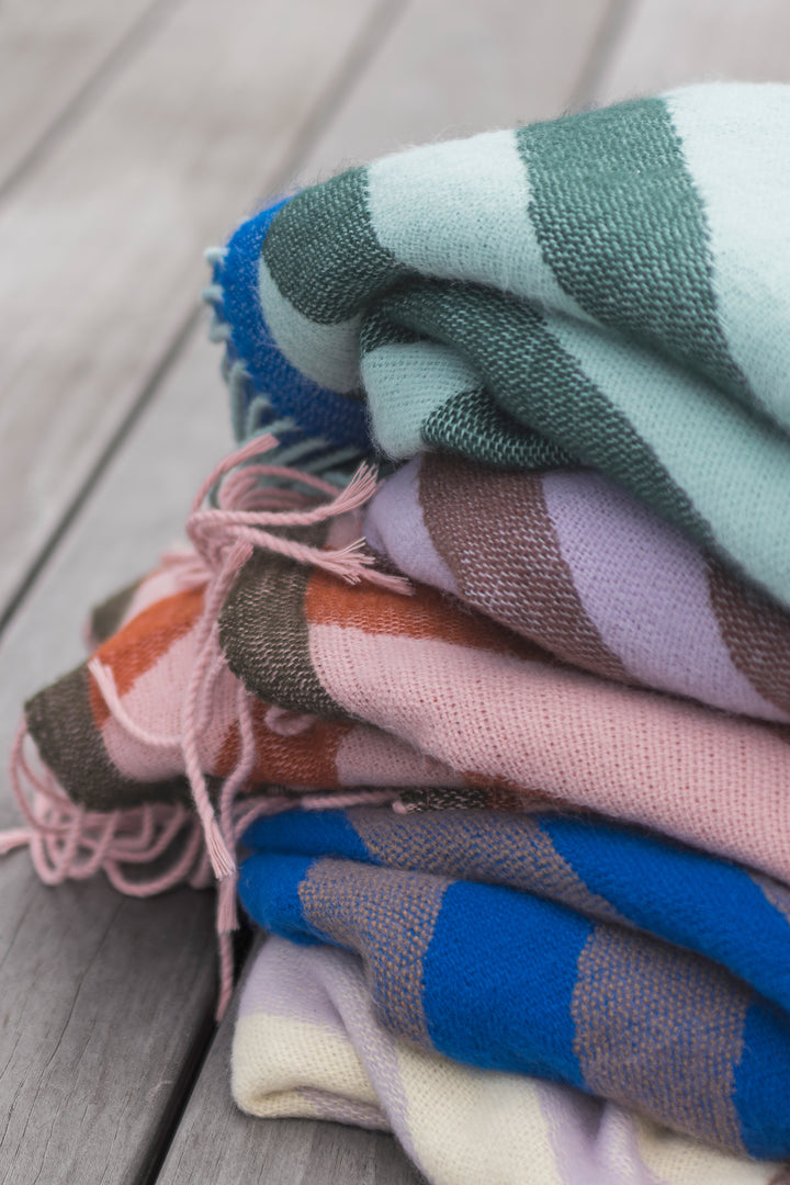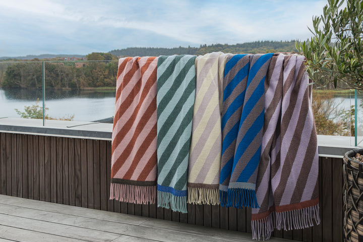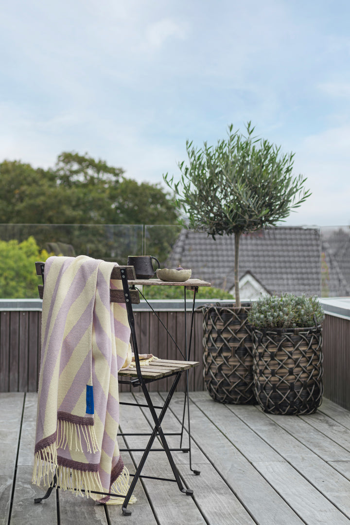 Wikkel jezelf in de Studio plaid van het Deens merk Mette Ditmer. Het diagonale patroon geeft een speelse, grafische touch en brengt meteen warmte en kleur in huis.